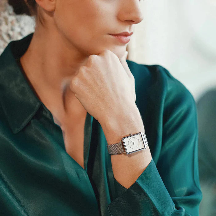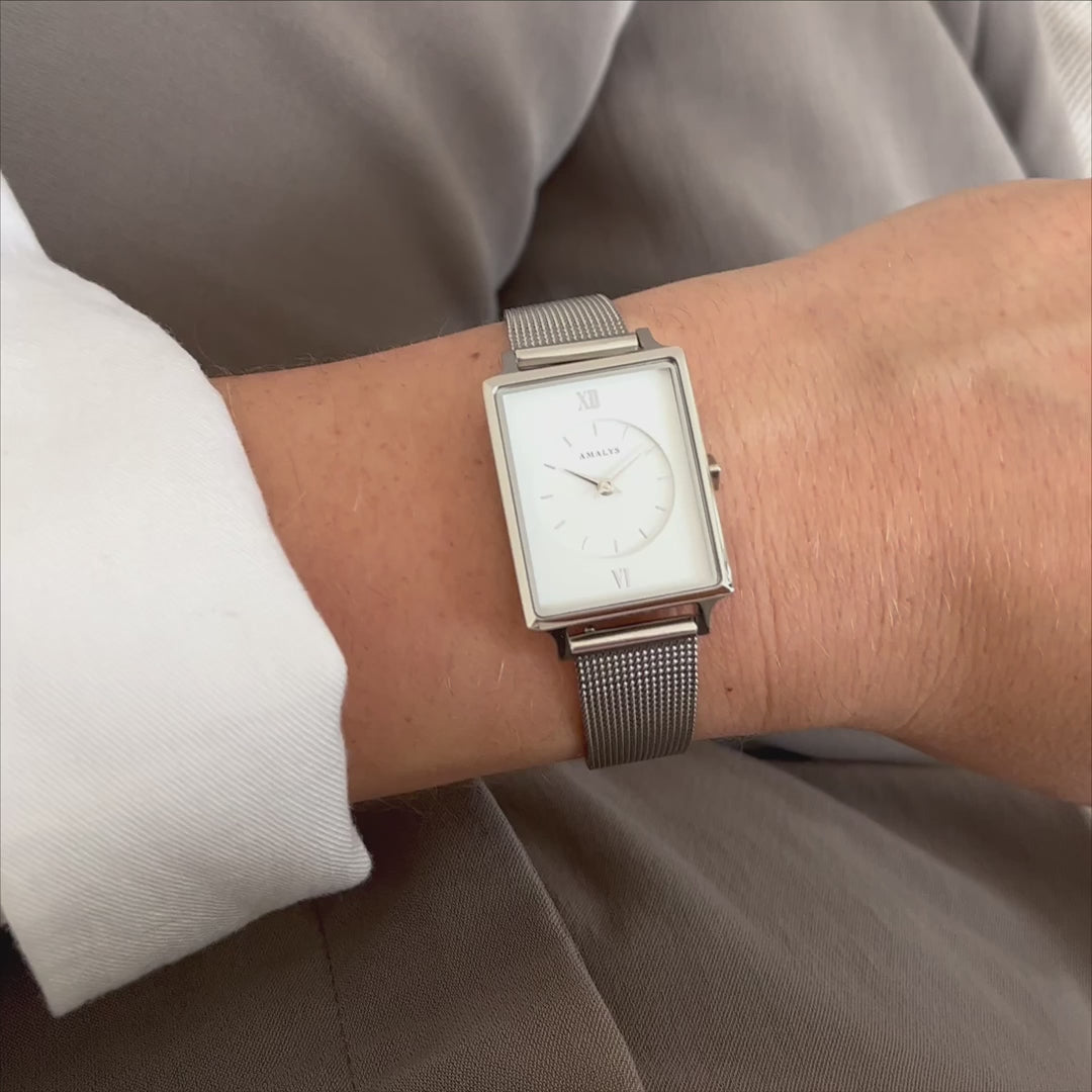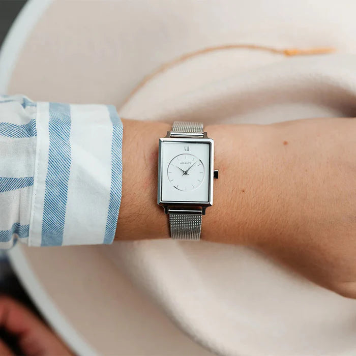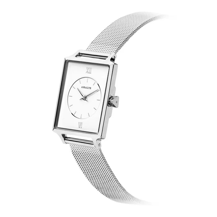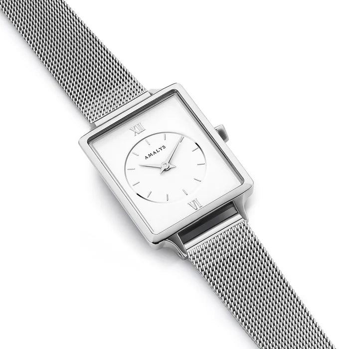 Amalys Céleste captures the essence of understated elegance with a design that celebrates life's precious moments. This refined timepiece features a graceful 23 x 28 mm stainless steel case paired with a 14 mm bracelet, delivering sophisticated comfort on your wrist. Powered by reliable Japanese quartz movement and protected by mineral glass, it's built to withstand everyday wear with 3ATM water resistance. Part of the coveted Hepburn collection, Céleste combines timeless beauty with practical durability. Enjoy complete peace of mind with a comprehensive 2-year warranty, plus an additional complimentary year when you register online.
