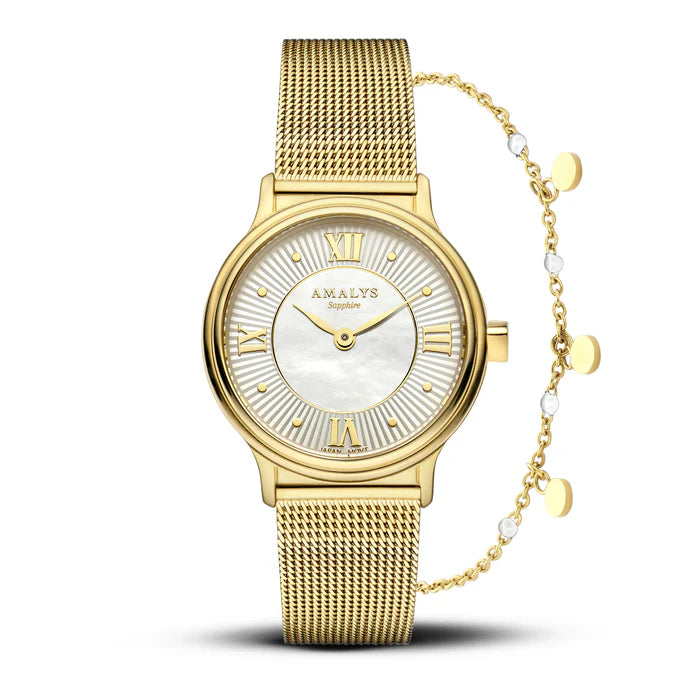 Looking for the perfect present? This stunning gift set pairs a sophisticated watch with an elegant jewellery bracelet, creating a coordinated accessory duo that elevates any wrist. Whether treating yourself or surprising someone special, the Amalys Giftbox Amandine delivers timeless style and versatility in one beautifully curated package.
