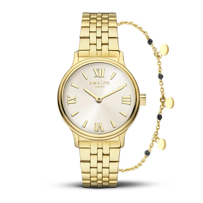 Elevate your accessory game with this stunning gift set, pairing a sophisticated watch with a beautifully crafted bracelet. Whether treating yourself or surprising someone special, this curated collection transforms any wrist into a showcase of refined elegance. The watch delivers timeless functionality while the complementary bracelet adds a touch of understated luxury. Perfect for those who appreciate quality craftsmanship and coordinated style, this set offers exceptional value and makes an unforgettable gift that speaks to discerning taste.