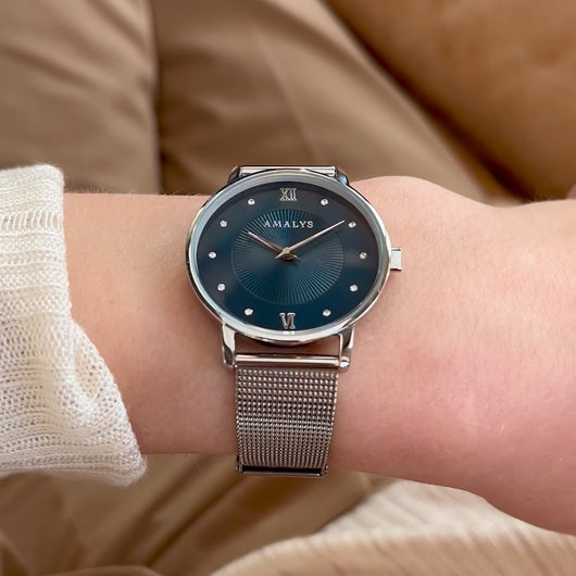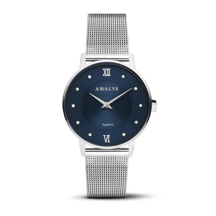 Elevate any occasion with the Amalys Héloïse, a sophisticated timepiece that seamlessly transitions from formal events to daily wear. Its striking deep blue dial commands attention while the robust 33mm stainless steel case ensures lasting durability. Crafted with precision, this watch features a reliable Japanese quartz movement, sapphire crystal glass for scratch resistance, and 3ATM water resistance for everyday confidence. The 16mm band sits comfortably on your wrist, while the comprehensive 2-year warranty—extendable to 3 years with online registration—protects your investment. Discover timeless elegance that works as hard as you do.
