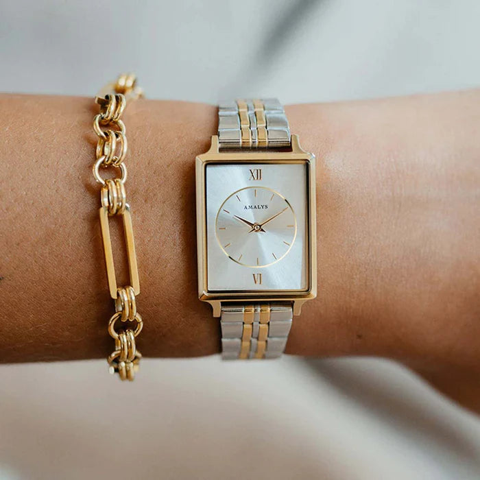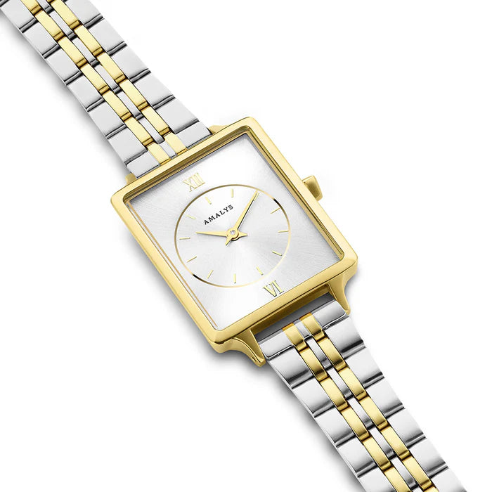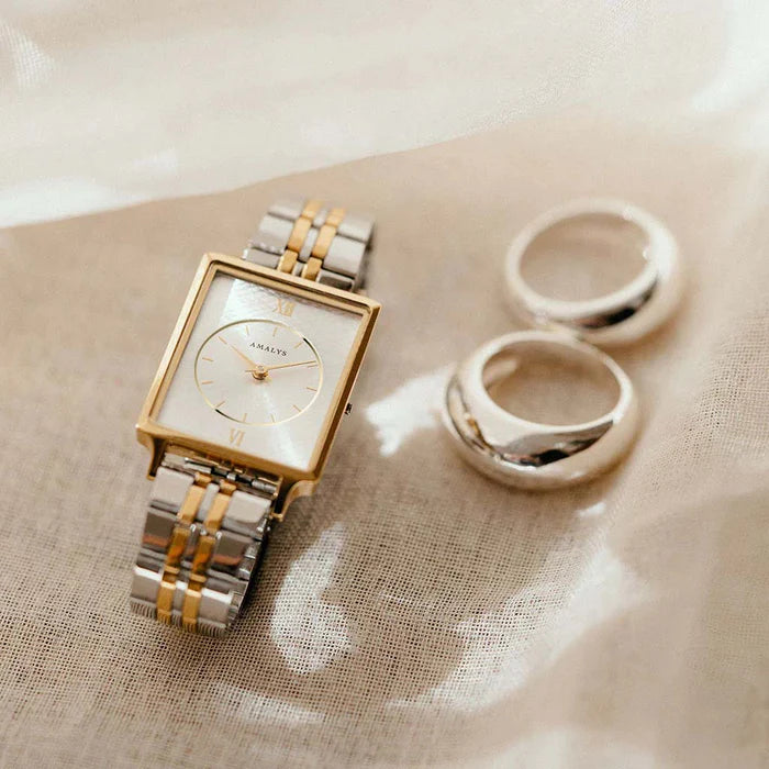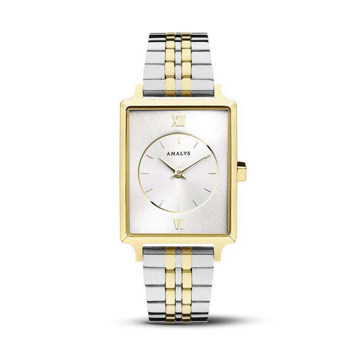 Penny captivates with its distinctive two-tone design, seamlessly blending gold and silver for a watch that truly commands attention. This striking timepiece delivers both style and substance with a robust stainless steel case measuring 23 x 28 mm, protected by mineral glass and powered by reliable Japanese quartz movement. Water-resistant to 3ATM, it's ready for everyday wear, while the 14 mm interchangeable bracelet system lets you customize your look effortlessly. Part of the prestigious Hepburn collection, Penny arrives with a comprehensive 2-year warranty, extendable to 3 years with online registration. Elevate your wrist with a watch that refuses to blend in.