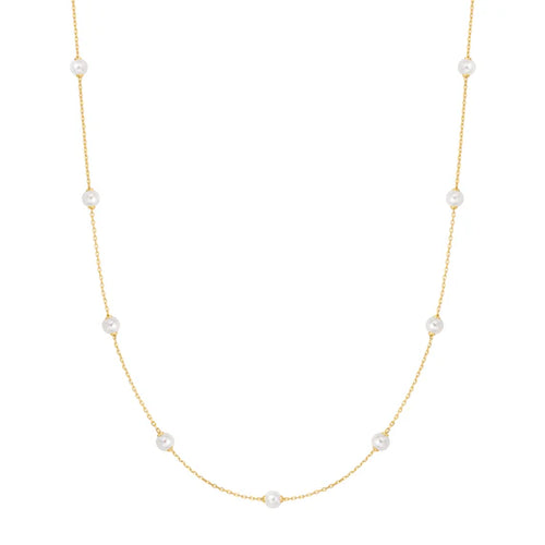 Gold Shell Pearl Station Chain Necklace