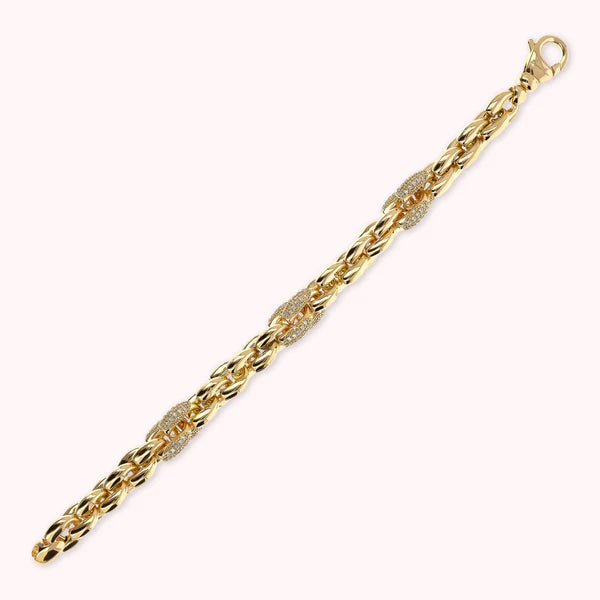 Elevate your elegance with this Bronzallure bracelet crafted from patented Golden Rosé alloy and plated in 18kt yellow gold. Featuring a refined geometric mesh interspersed with dazzling cubic zirconia pavé elements, it radiates a luminous allure. Designed and made in Italy, this hypoallergenic piece is nickel and cadmium free, ensuring comfort for sensitive skin. Measuring 19.5 cm, it secures with a lobster clasp for a perfect fit. A sophisticated accessory that seamlessly blends timeless craftsmanship and modern style.