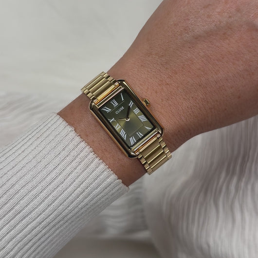 Meet the Belisenna—where timeless elegance gets a cheeky twist. This petite rectangular beauty sports a gleaming gold case (32 x 21 mm) paired with a stunning olive green sunray dial that catches the light just right. Wrapped in a matching gold stainless steel strap, it's the perfect size for delicate wrists. Best part? Swap the 14 mm strap whenever the mood strikes—mix and match with any CLUSE strap to match your vibe. Plus, adjusting the fit is a breeze you can handle solo.