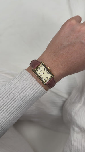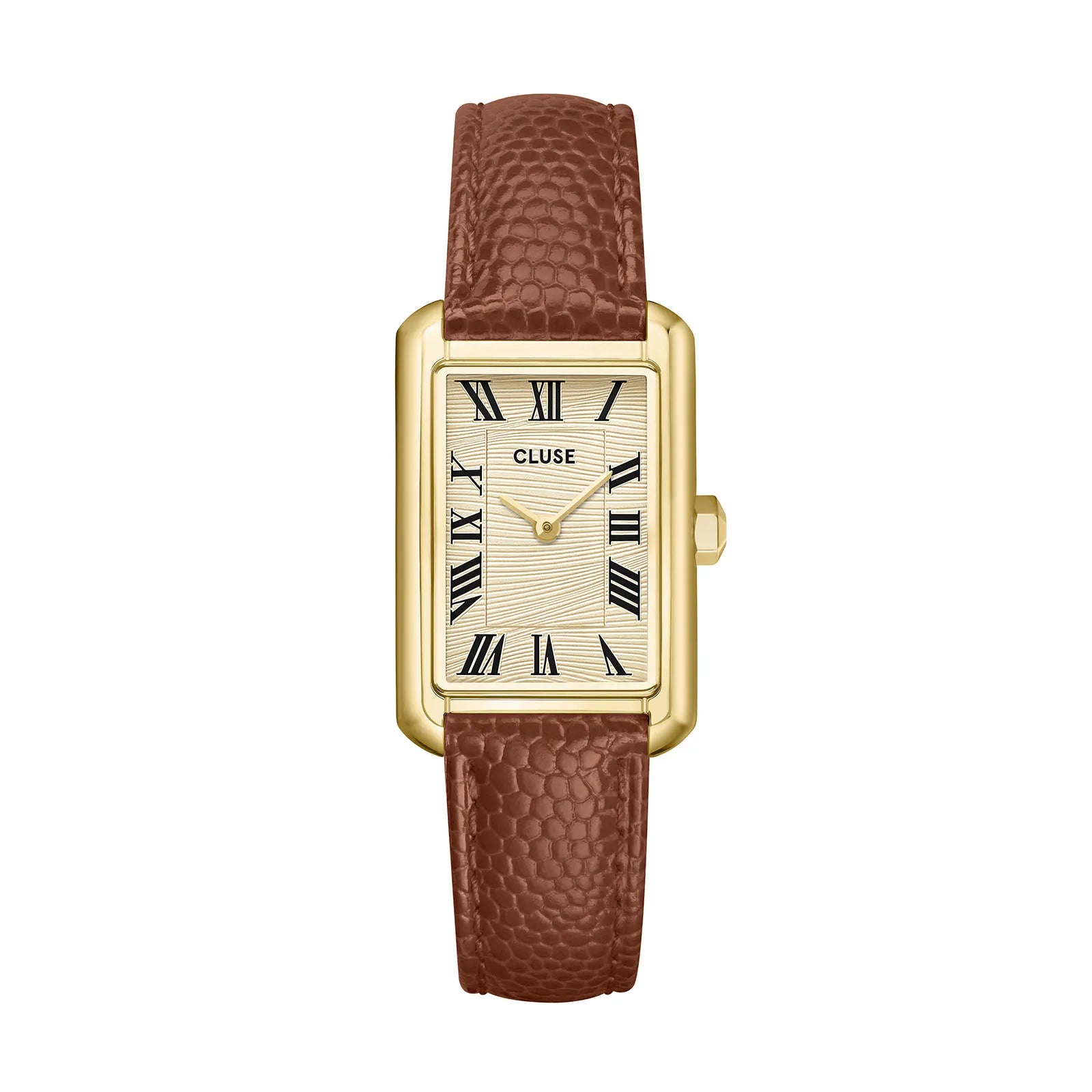 Elevate your everyday elegance with this stunning Cluse Belissena timepiece. Featuring a sleek 21 x 32 mm rectangular gilded steel case paired with a warm gold-plated dial, it's the perfect blend of minimalist design and timeless sophistication. The supple brown leather strap adds a touch of understated luxury, while the reliable quartz movement keeps you perfectly on schedule. Water-resistant to 50m, this beauty handles life's little splashes with ease. A watch that whispers style rather than shouts it.