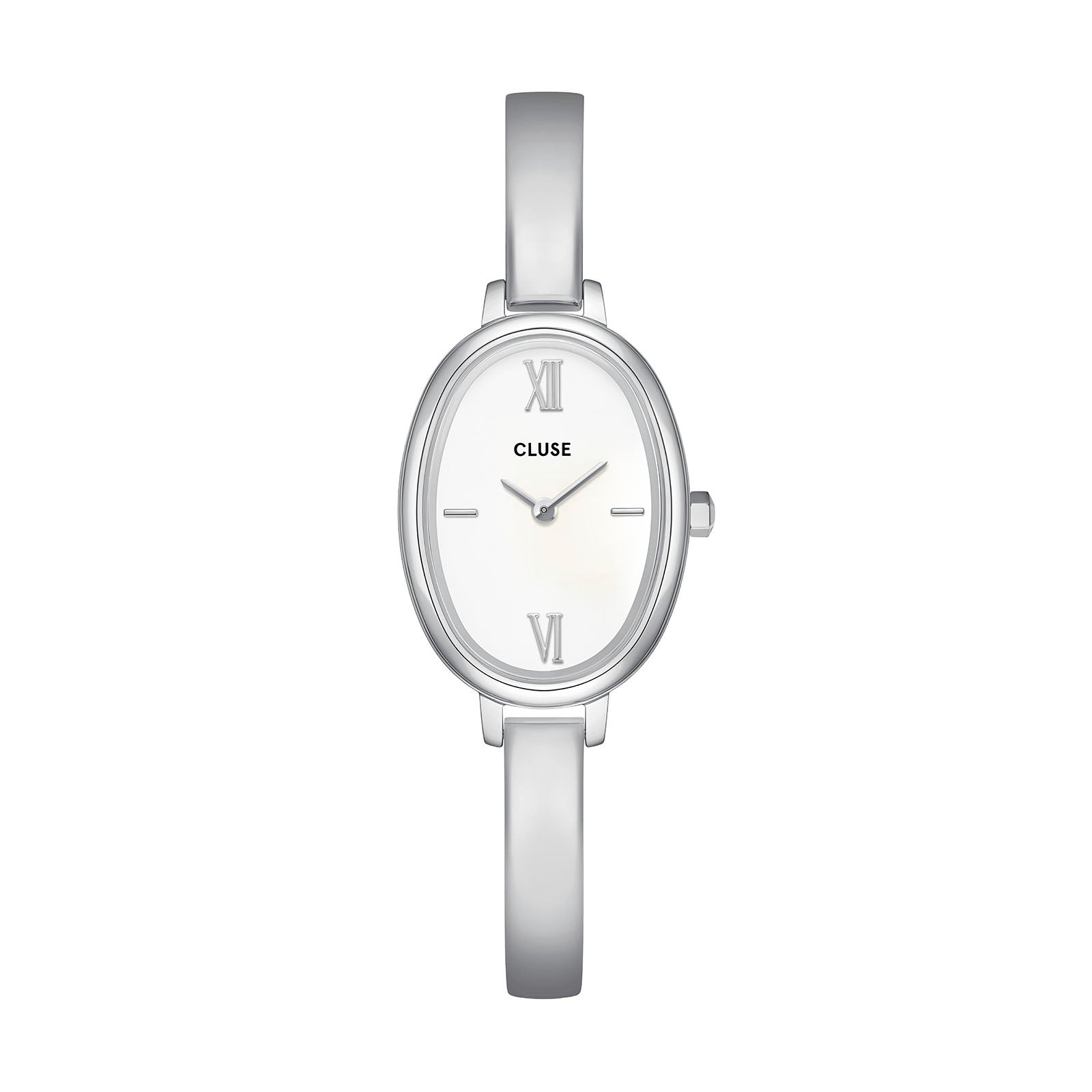 Introducing the Cluse L'Ovale—a chic timepiece that brings effortless elegance to your wrist. This women's watch showcases a sleek 30 mm silver case paired with a crisp white dial, all anchored by a polished stainless steel bangle strap (6 mm) in matching silver. Understated sophistication meets everyday wearability in this timeless design.