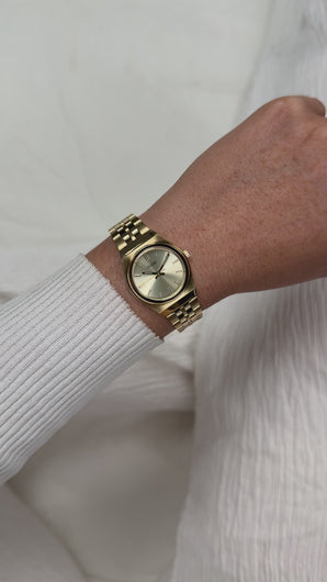Step back in time with this charming Cluse Retro 70's mini watch, where vintage vibes meet modern reliability. Featuring a compact 32mm gold-plated steel case that catches the light beautifully, this timepiece pairs a minimalist two-hand dial with a matching gold-plated bracelet for effortless elegance. Powered by dependable quartz movement, it keeps perfect time while channeling retro nostalgia. Water-resistant to 50m, it's ready for everyday adventures—from coffee dates to spontaneous splashes. Pure groovy style wrapped around your wrist.