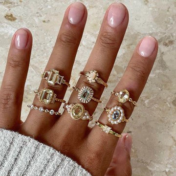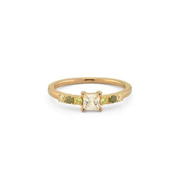 Make a statement with this striking 24Kae Ring, where a luminous clear square stone takes centre stage, beautifully framed by two delicate sage green accents. The sophisticated colour contrast creates an eye-catching design that effortlessly elevates any look. Perfect for those who appreciate jewellery that combines elegance with distinctive style, this piece is guaranteed to turn heads and spark conversations wherever you go.